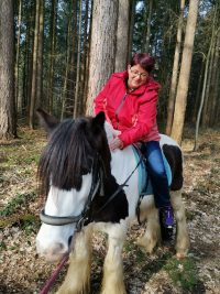 Seit gut zwei Jahren versuchen wir einmal die Woche zur Reittherapie zugehen. Manchmal, wenn das Wetter schlecht ist machen wir das nicht. Da Andrea das alles nur draußen macht was wir total schön finden. Wir machen auf dem Pferd verschiedene Übungen nach Feldenkrais. Was unserem Körper lockerer macht. Auch das Pferd rüttelt uns ganz schön durch. Was nochmal einen sehr positiven Effekt auf unsere Muskulatur hat. Durch die Fibromyalgie ist es ja nicht einfach sich an bestimmten Tagen zu bewegen. Aber wir merken einfach, wenn die Zeit vorbei ist, dass sich unser ganzer Körper wesentlich lockerer anfühlt. Das haben wir bisher bei kaum einer Behandlung gehabt. Durch die Bewegung des Pferdes und auch die Übungen von Andrea ist das für uns eine sehr gute Kombination.