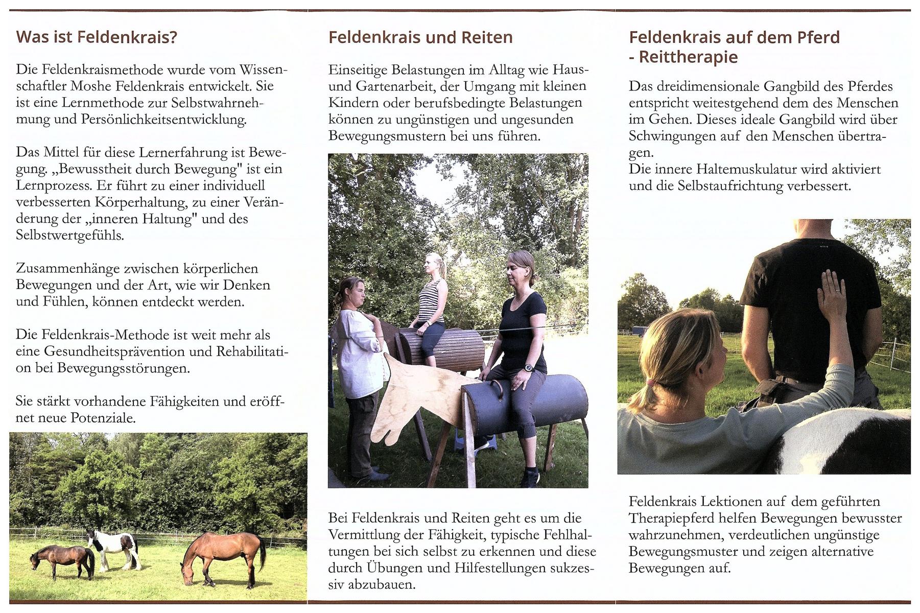 Die Feldenkrais-Methode ist eine körperorientierte und ganzheitliche Lernmethode zur Selbstwahrnehmung und Persönlichkeitsentwicklung, die vom Wissenschaftler Dr. Moshe Feldenkrais entwickelt wurde. Im Bereich mit Pferden ist seine bekannteste Schülerin, Linda Tellington-Jones, aber auch andere bekannte Reiter haben den Nutzen dieser Methode erkannt.
