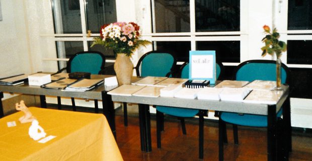 Alles ist aufgebaut: Auch der Bücher- und Info-Tisch wartet auf die Besucher/innen. :-)
